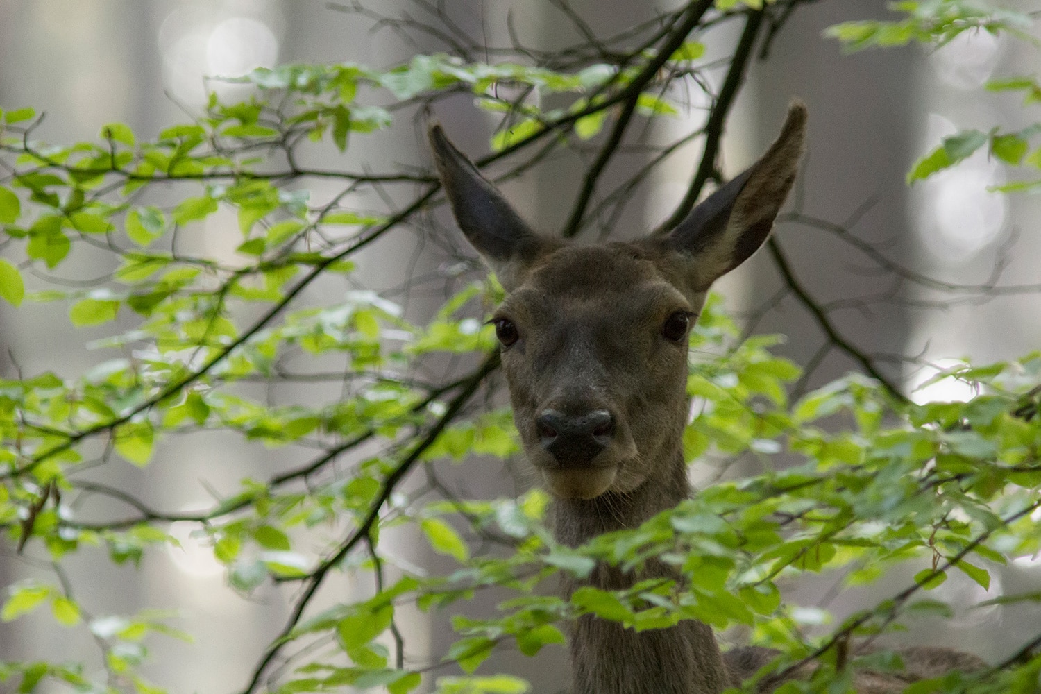 En zo waren we -terwijl de rest van Nederland rondhing op de vrijmarkten met Koningsdag- rondjes aan het rijden al speurend naar wild. Helaas is de door ons veel gebruikte beverroute afgesloten (Misschien huist de wolf daar?). We werden daarom gedwongen nieuwe paden te zoeken. En dat viel niet tegen, integendeel! Wat hebben we veel gezien: reeën die rustig grazend ons aangaapten, roedels hindes, vossen, edelherten met bastgeweien en zwijnen. Zelfs een kapitale 12 ender kruiste ons pad. Op andere momenten zagen we: zwarte ooievaar, vuursalamander, rode wouw, geelgors, eekhoorn, glimworm, waterspreeuw en alpenwatersalamander. Een voorzichtige schatting levert de volgende resultaten op: 25 reeën, 50-70 edelherten, 50 zwijnen.